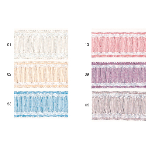 クシュクシュとギャザーをあしらったリボンです。柔らかで光沢のある、上品なフランス製のリボンです。