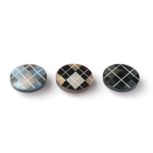 天然素材の貝を使用し、アーガイル模様を手加工で表現したボタンです。