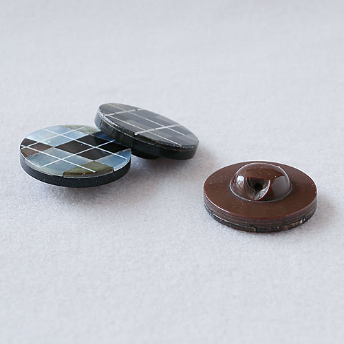 2種類の貝の色を繊細に切り分け組み合わせたボタンで、大変、手の込んだ逸品です。