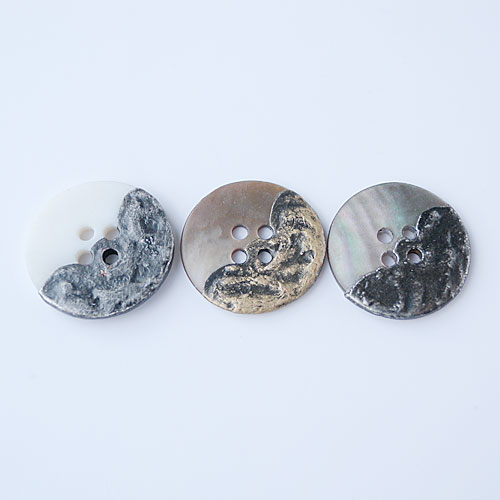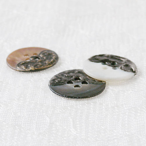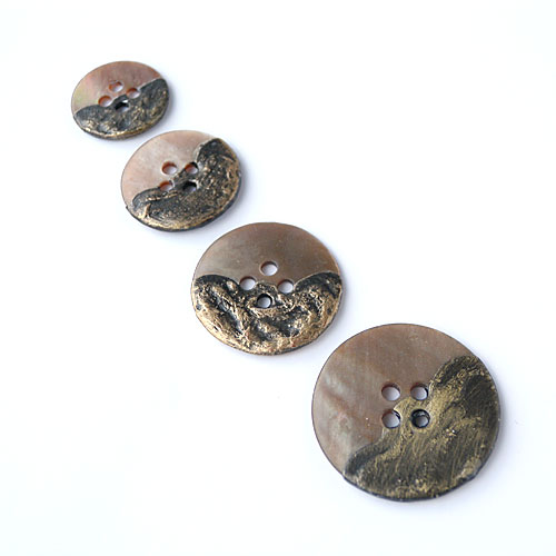 天然素材の貝にメタルをコーティングしたワイルドなボタンです。