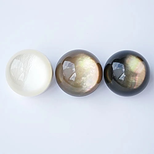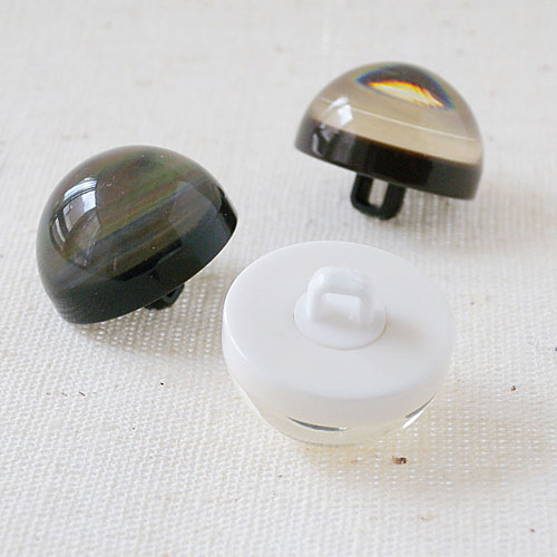 天然素材の貝に、スノードームのような透明樹脂をのせたボタンです。