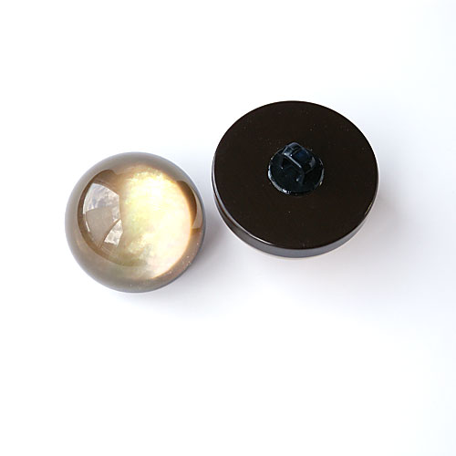 天然素材の貝に、スノードームのような透明樹脂をのせたボタンです。