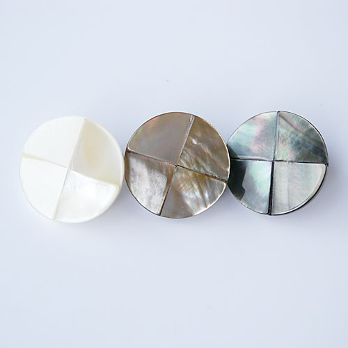 天然素材の貝を微妙にずらし、風車のように貼り合わせたボタンです。