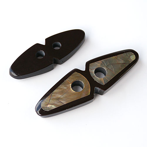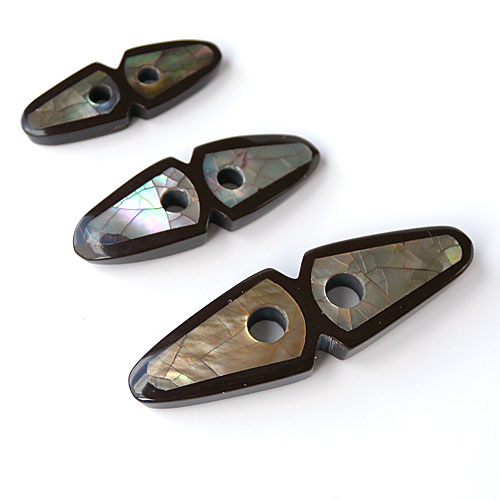 天然素材の貝を螺鈿のよう使用したトグルボタンです。