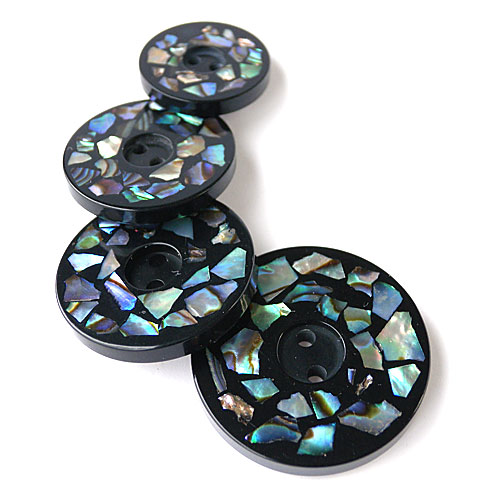 本体は、ポリエステル製のボタンで、細かな貝散りばめ