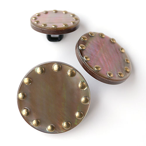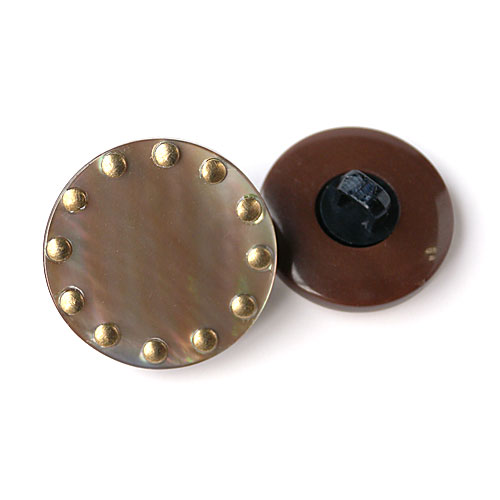 貝ボタンcol.47(茶色)xマットゴールド (18mm)