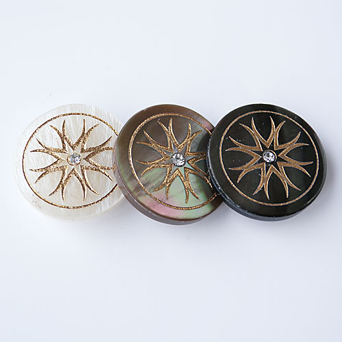 天然素材の貝に彫刻した後、ゴールドの彩色を施し
