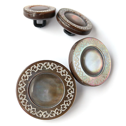 1つの素材でできていますが、組合せボタンのように豪華な印象を与えてくれるボタンです。