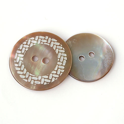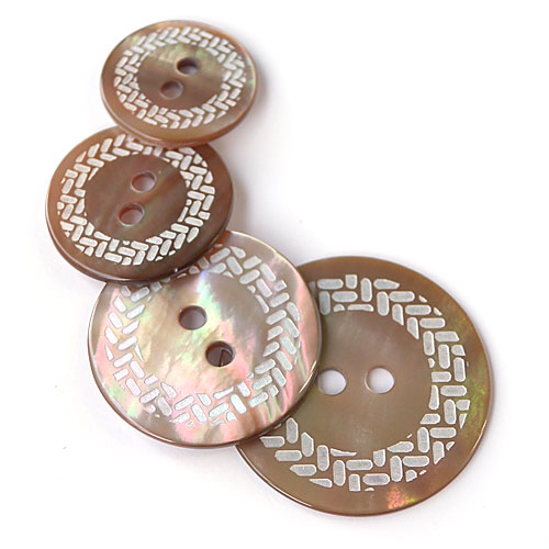 天然素材の貝ボタンに、月桂のような模様を彫刻で施しました。
