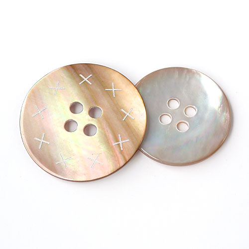 天然素材の貝を使用し周りにレース模様の彫刻をあしらったボタンです。