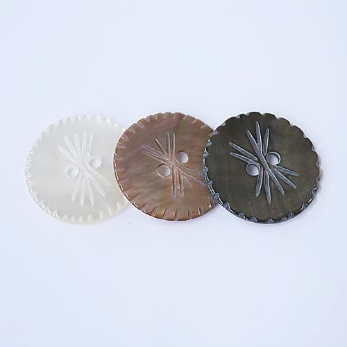天然素材の貝ボタンに、一つ一つ手作業で彫刻を施したボタンです。
