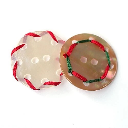 そのままでも涼し気ですが、カラフルな糸を使用し糸の通し方を工夫すると、様々な模様を楽しむことができるボタンです。