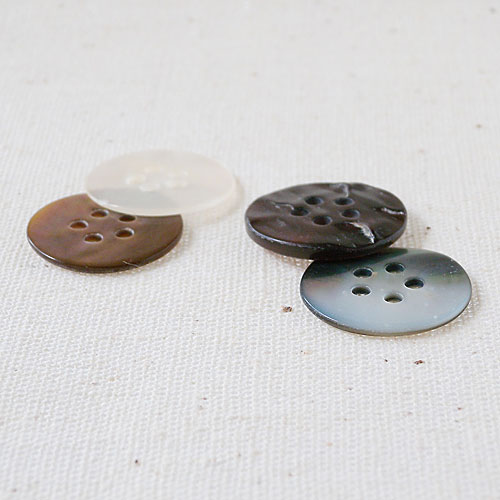 天然素材の貝でできた、ボタン穴に特徴のあるボタンです。