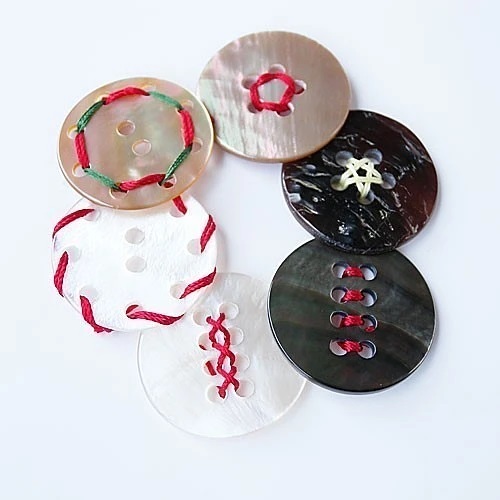 そのままでも涼し気ですが、カラフルな糸を使用し糸の通し方を工夫すると、様々な模様を楽しむことができるボタンです。