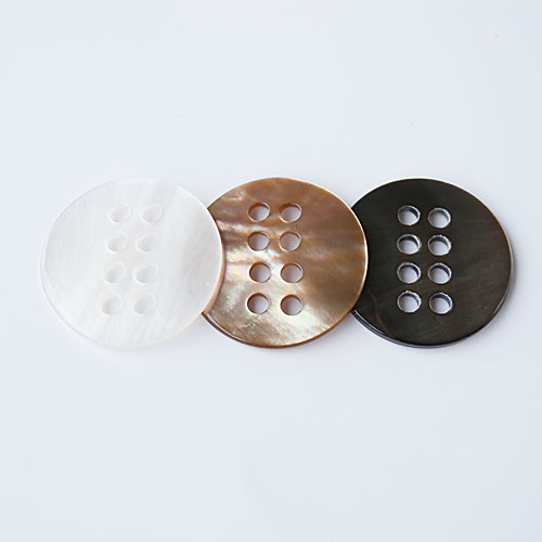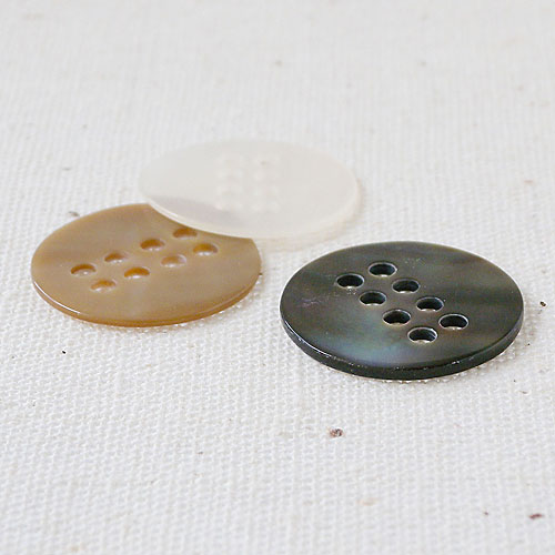 天然素材の貝でできた、ボタン穴に特徴のあるボタンです。