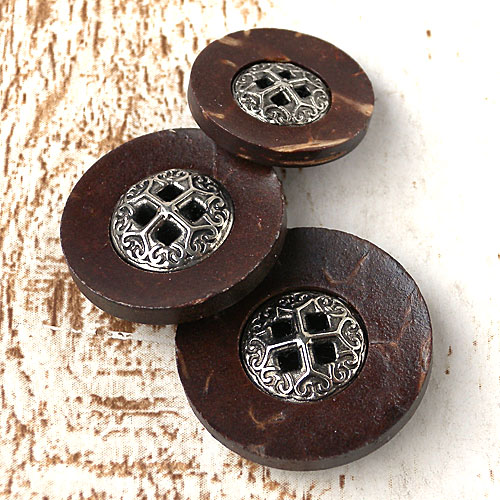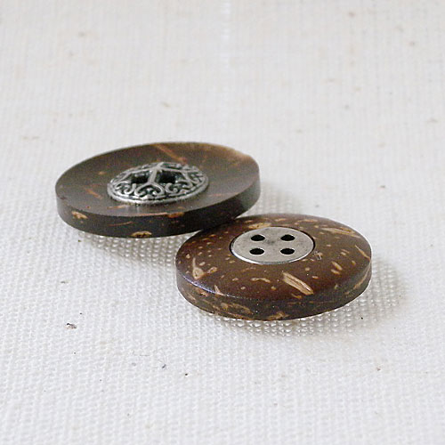 天然素材のココナッツボタンにメタルを組合せたボタンです。