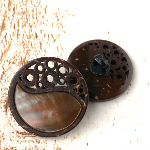 天然素材のココナッツボタンに貝を組合せたボタンです。