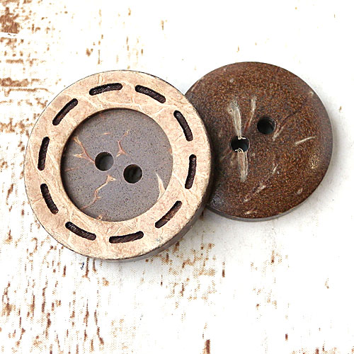 中央を凹彫刻で段差を付け、ステッチ模様入りの堤防付ボタンに仕上げました。