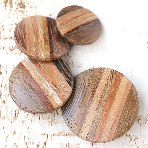色や表情の違う木を細く切り分け、組合せた、色どり豊かなボタンです。