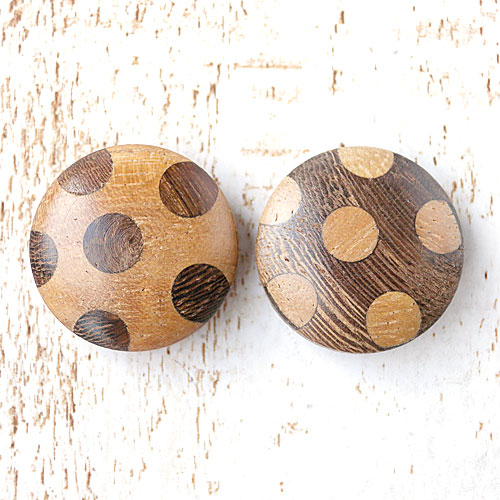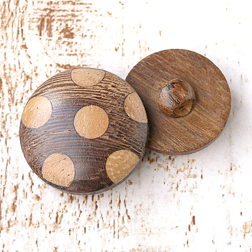 木ボタンcol.42(ベージュx水玉:焦茶) (15/18/20/23mm)