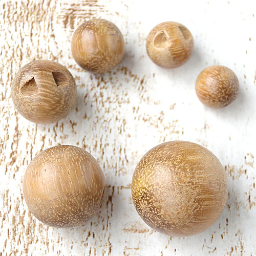 木のナチュラルな色合いと、コロンとした可愛いらしい形が特長のボタンです。