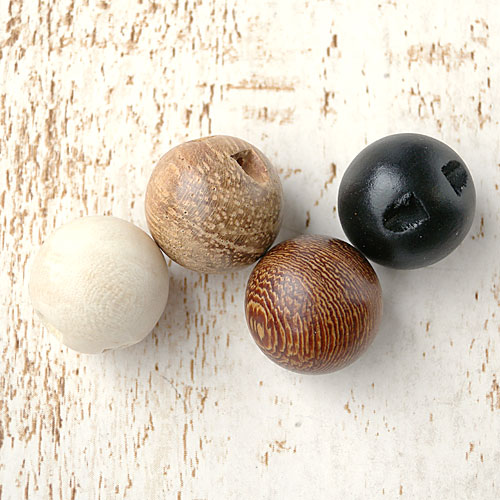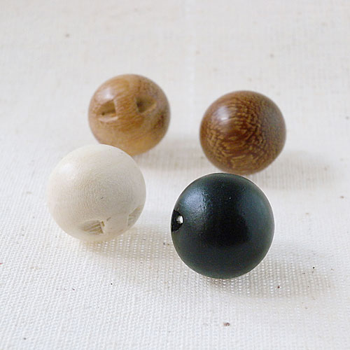 木のナチュラルな色合いと、コロンとした可愛いらしい形が特長のボタンです。