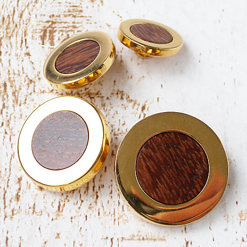 木ボタンcol.42(茶色)×ゴールド (13/15/18/21mm)