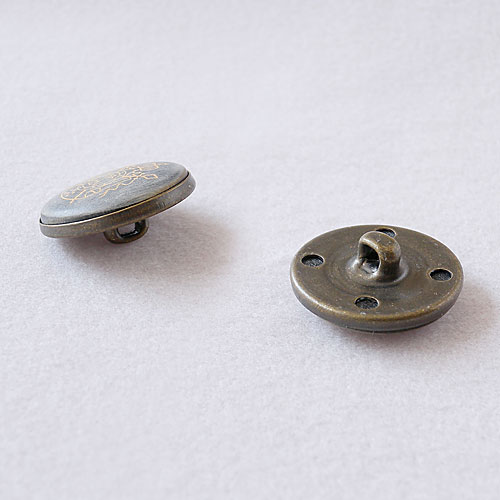 レーザー彫刻の焦げた風合いが、ヴィンテージ感を漂わせているボタンです。