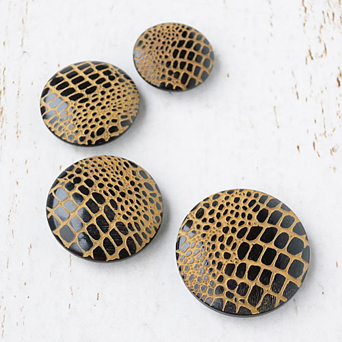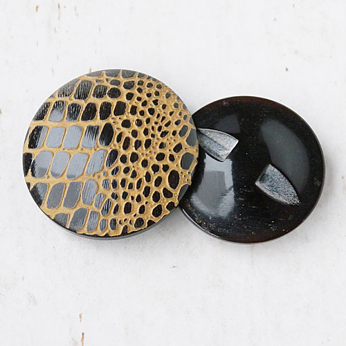 本水牛の表面にレーザー彫刻で、クロコダイル柄を表現したボタンです。