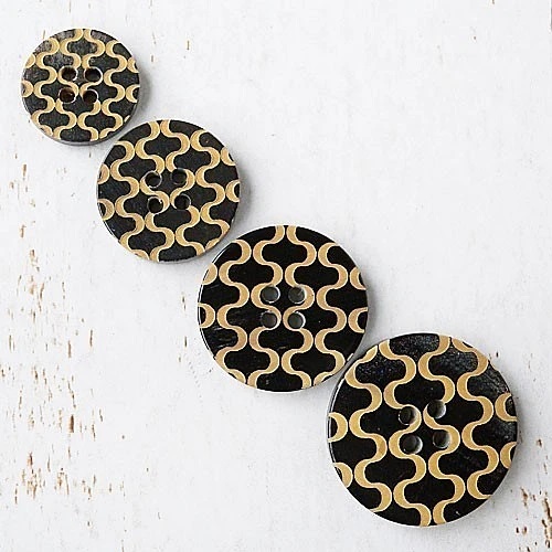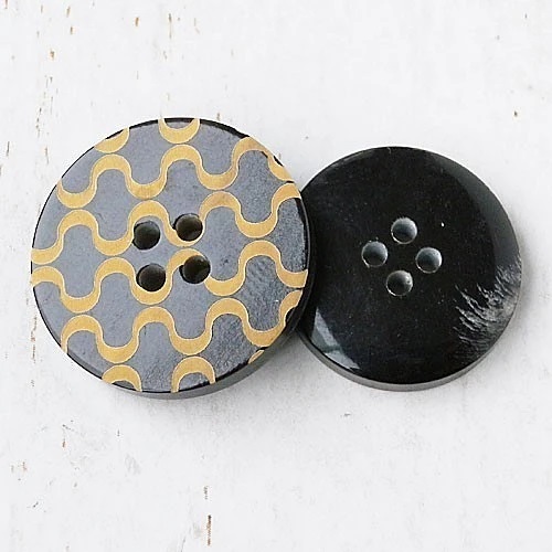 本水牛の漆黒のようなツヤの表面に、模様を彫刻したボタンです。