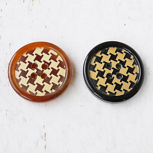 本水牛ボタンに、レーザー彫刻で千鳥格子の模様を施しました。