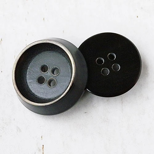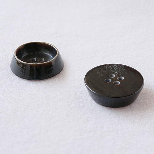 高さのある本水牛のボタンです。ボタンの縁に焦がし加工を施しエッジを効かせています。
