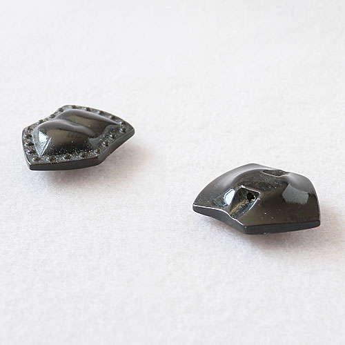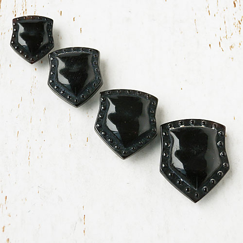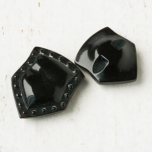 盾のような形をした本水牛のボタンは、どこか重厚感を感じます。