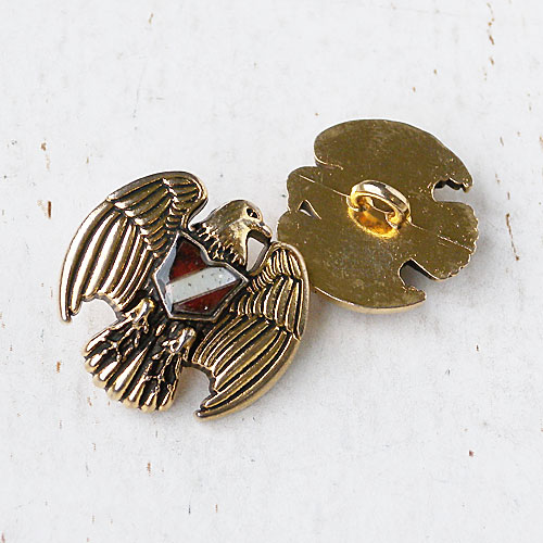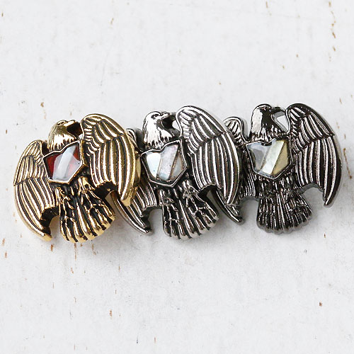 コンドルの細かなレリーフの中央には、天然貝を象嵌し、エポキシ樹脂でコーティングした、手の込んだボタンに仕上がっています。