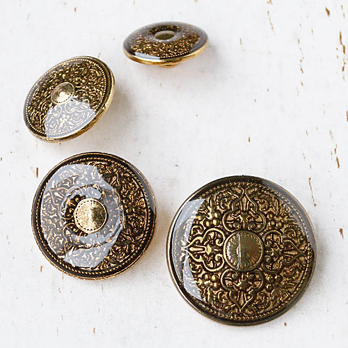 繊細な唐草模様のレリーフを透明エポキシ樹脂でコーティングしたボタンです。