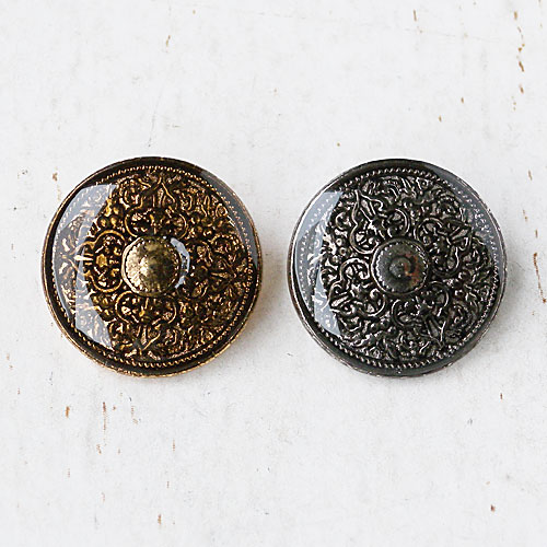 繊細な唐草模様のレリーフを透明エポキシ樹脂でコーティングしたボタンです。