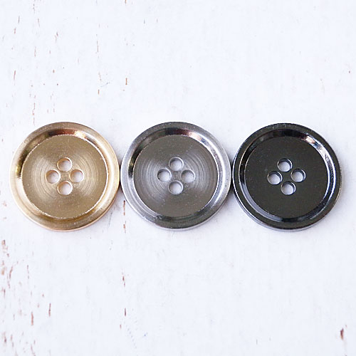 エッジの効いた堤防付きのプレーンなボタンに、サークル状の刷毛目のようなヘアライン加工したボタンです。