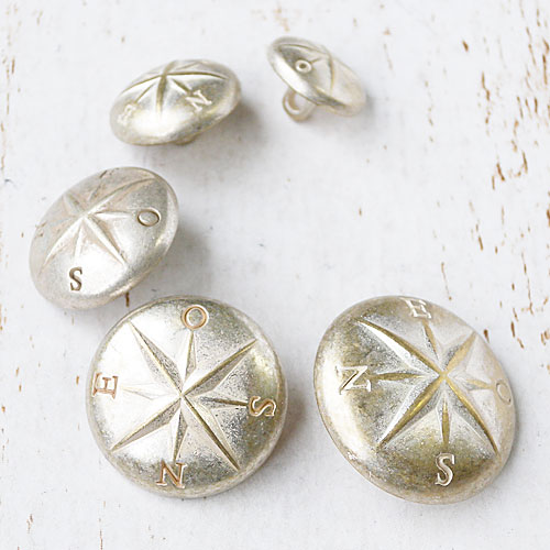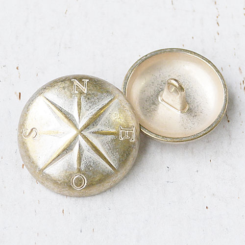 古い羅針盤をイメージしたデザインのボタンで、色により様々なアンティーク加工を施しています。