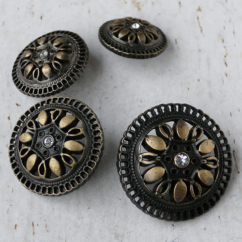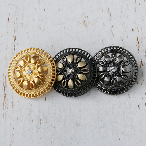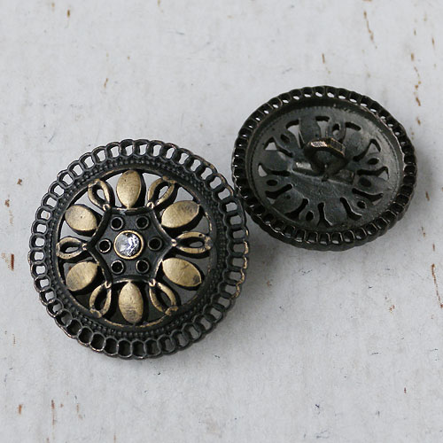 エキゾチックな模様の中央に、ラインストーンが輝くボタンです。