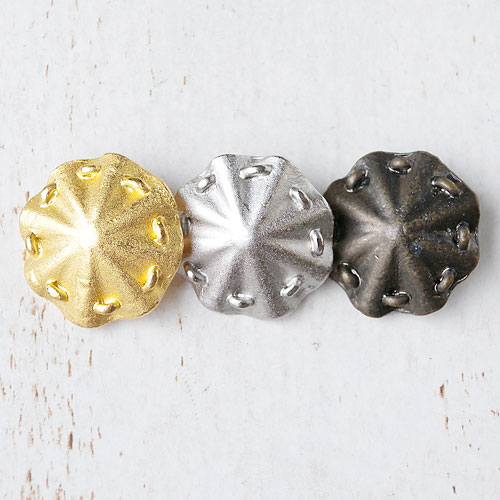 若干、メタルの重みはありますが、ラバーキャスト製法ならではのレリーフ模様で、可憐な印象を与えてくれるボタンです。