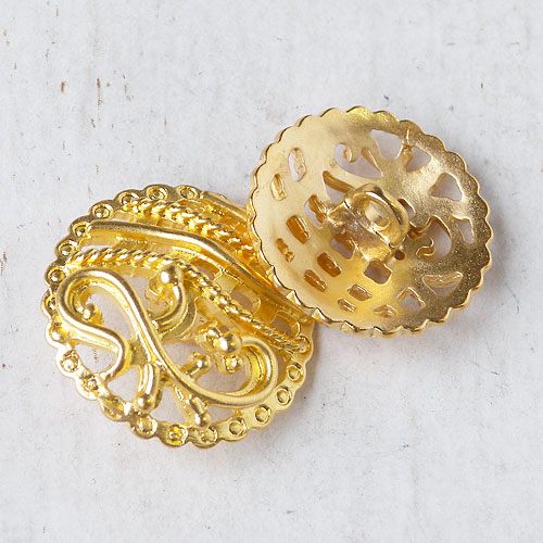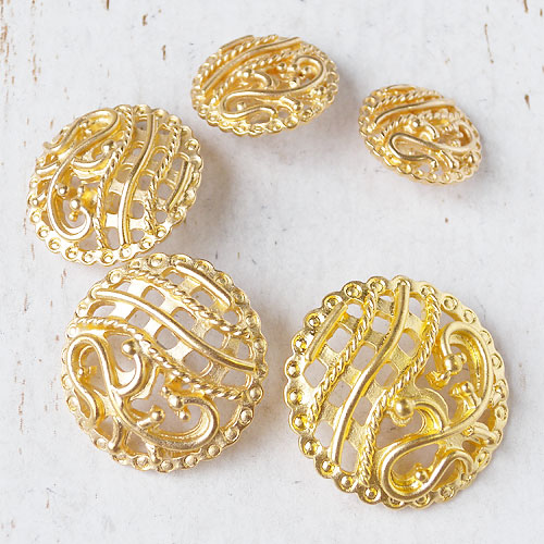 若干、メタルの重みはありますが、ラバーキャスト製法ならではの透かしやレリーフ模様で、可憐な印象を与えてくれるボタンです。