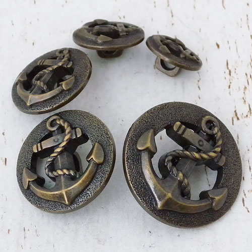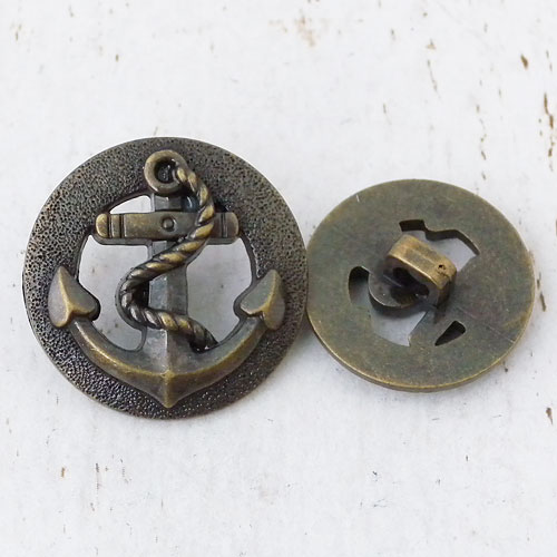 立体的なレリーフと透かしで、碇(イカリ)のモチーフをリアルに表現したメタルボタンです。