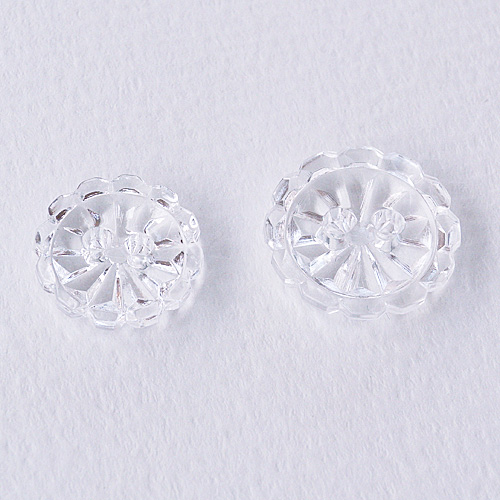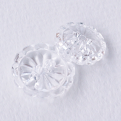 カットをあしらったお花の様な透明ボタンです。軽量でブラウスやアクセサリーにおススメです。
