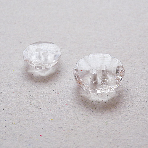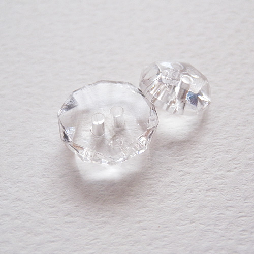 透明でカットデザインが美しいボタンです。軽量でブラウスやアクセサリーにおススメです。