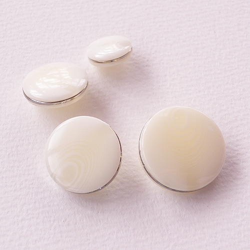 ポリエステル樹脂を使用した水牛調の艶ありボタンです。リングにはステンレス素材を使用しています。