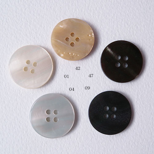 ポリエステル樹脂を使用した貝調ボタンです。