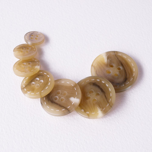 耐久性のあるポリエステル樹脂を使用したステッチ模様のボタンです。