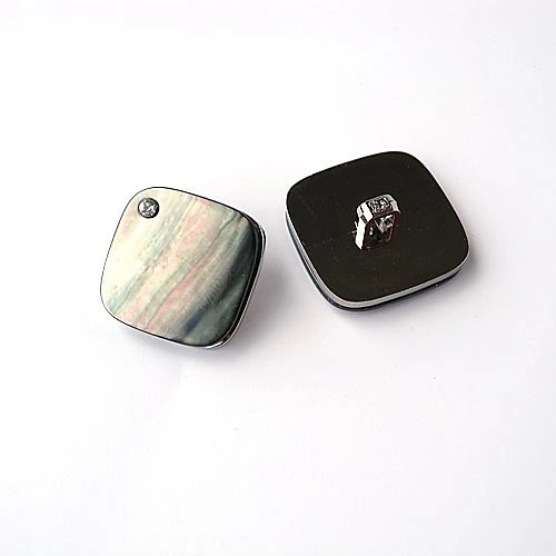 天然素材の貝にラインストーンをあしらい、メタリックの金具と組合わせた