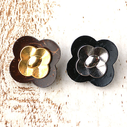 天然素材のココナッツボタンにメタルを組合せたボタンです。