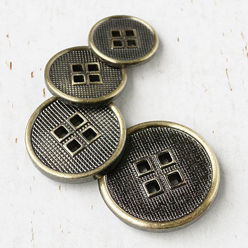 金型に細かな模様を施した、とても高度な技術を要する製法で、ダイキャストボタンとも呼ばれています。
